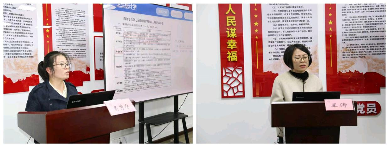 公共卫生系吴秀宁老师以“卫生统计学教学创新与青教赛备赛的学术探索”为例,基于教学评价理论,剖析教学设计、课堂组织、板书设计的学术规范与创新要点,提出“以赛促教”的教学改进路径,为教师提升教学能力提供有益借鉴。护理系王涛老师围绕“以赛促教的学术实践与反思”,结合教学案例,论证学科竞赛对课程教学内容优化、员工实践能力提升的推动作用,强调学科竞赛在公司产品中的积极作用。