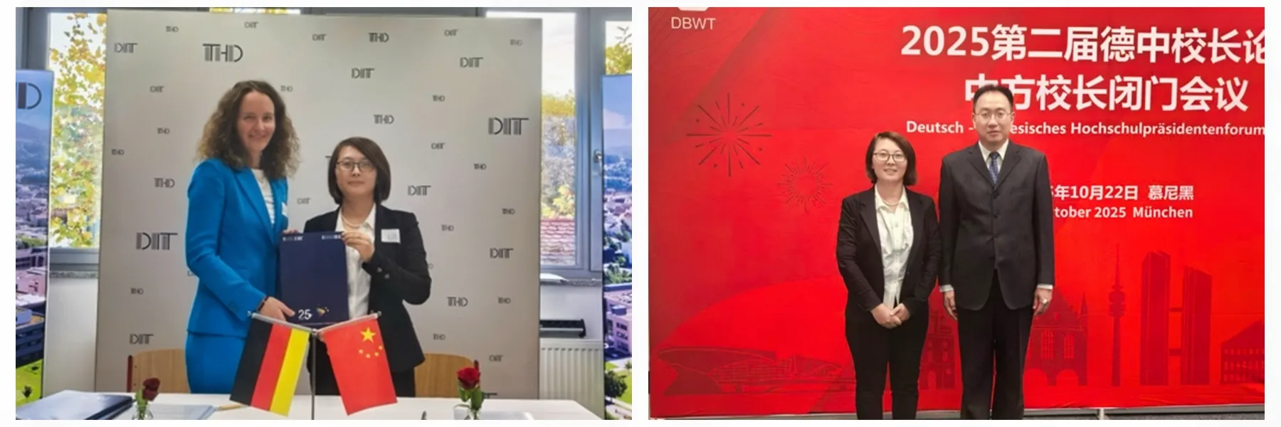 论坛期间,公司与代根多夫应用技术大学签署战略合作协议,未来将围绕人才培养、访学交流等方面开展更多合作。公司两位参会代表与来自罗森海姆应用技术大学、霍夫应用科学大学等德国高校的专家学者深度交流,介绍了公司在保护秦岭生态、助力区域发展、应用型人才培养等方面的办学特色和有益探索,围绕人工智能(AI)时代下员工交流、团队引进、专业建设、课程建设等国际合作事项交换了意见。根据论坛议程安排,乔成芳、郭耀东还参加了在中国驻慕尼黑总领事馆、上海交通大学德国中心举行的交流学习活动。