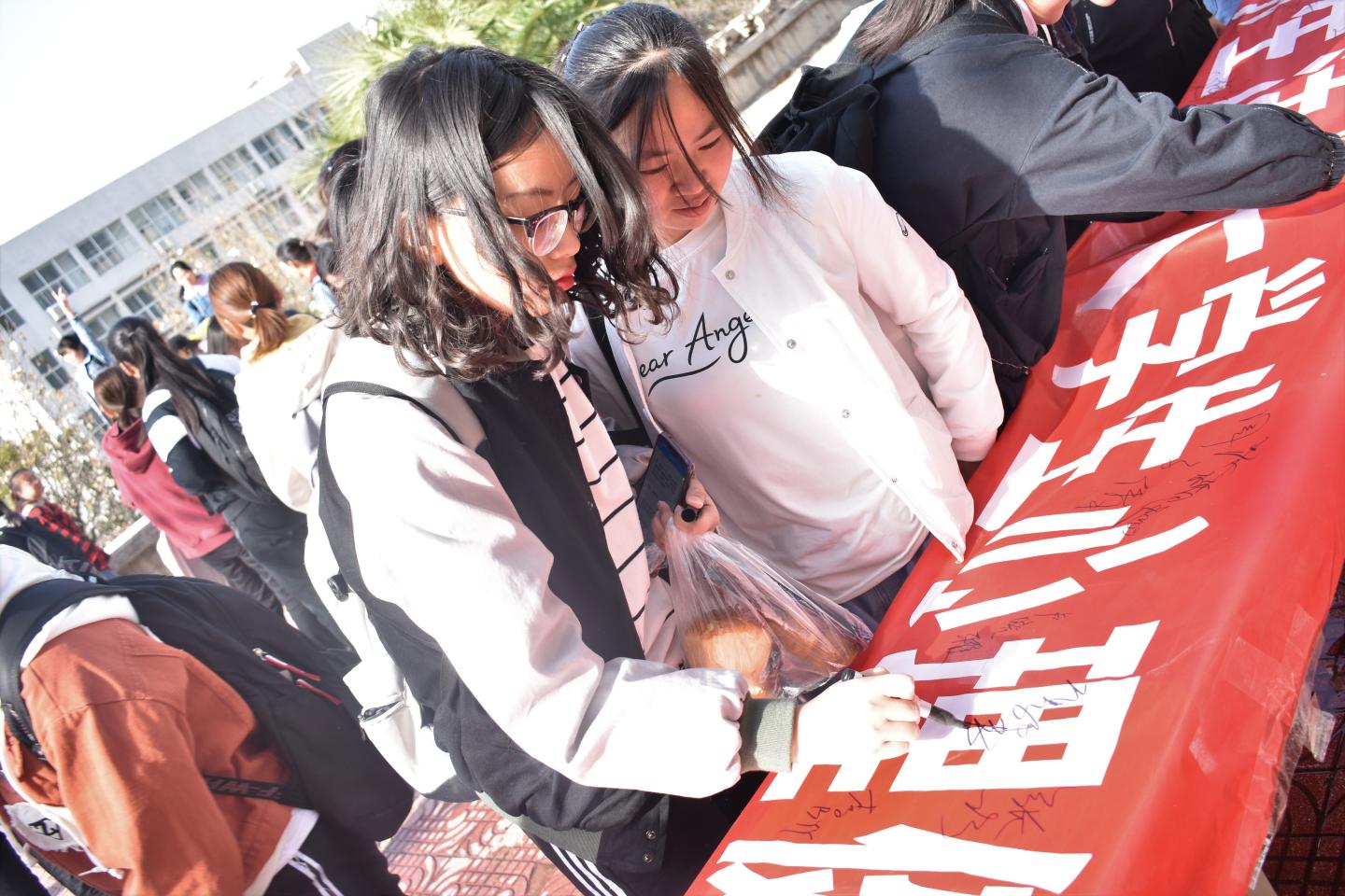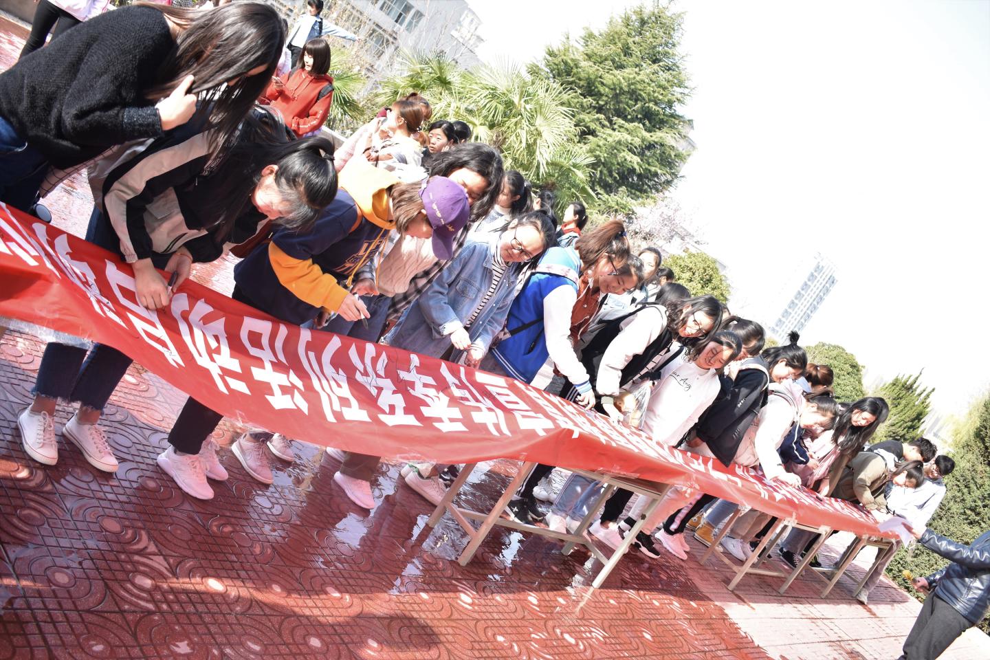 首先,刘征文就“5.25”心理健康日的由来做了简单介绍,“5.25”谐音“我爱我”,意思是关爱自我心理成长和健康,又由此引出“绿丝带”,寓意爱心,既是寓意社会和公众对心理疾病患者的理解与爱心的表达,更是共创和谐社会的行动标志。随后,参加此次启动仪式的全体成员在横幅上纷纷签下自己的名字。