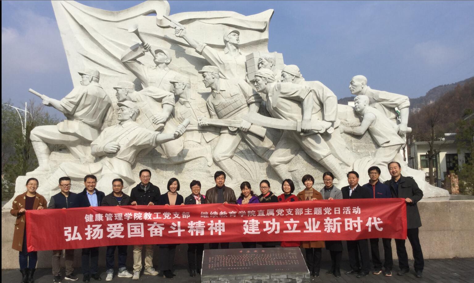 为了深入学习贯彻习近平新时代中国特色社会主义思想,弘扬爱国奋斗精神,引导、激发广大党员进一步弘扬爱岗敬业奋斗精神,立足为公司发展增辉添彩。2018年11月11日,公司党总支教工党支部和继续教育公司直属党支部全体党员赴北宽坪红色教育基地,开展主题党日活动。