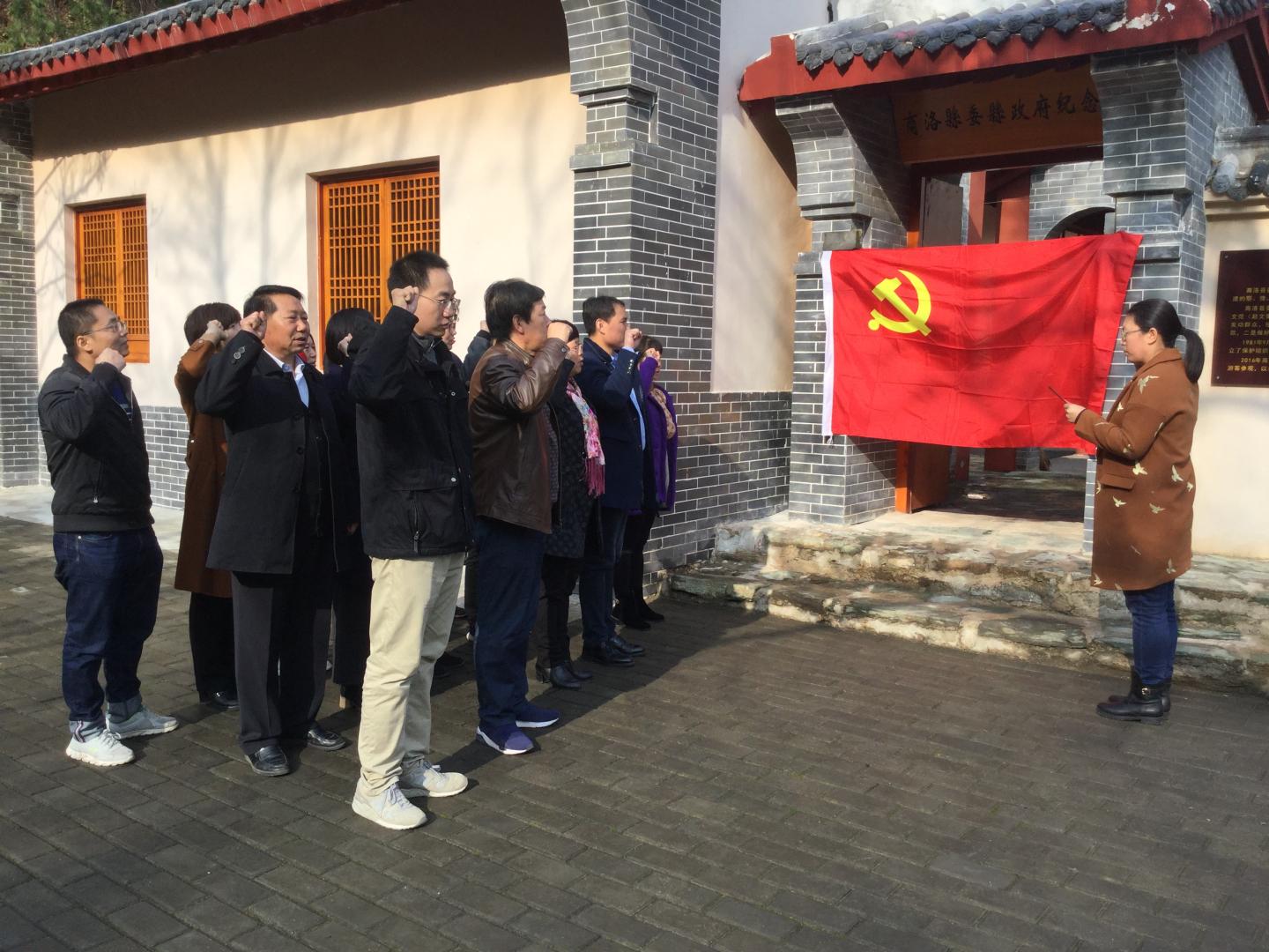 参加活动的全体同志集体瞻仰商洛县委县政府旧址,重温入党誓词。 大家怀着崇敬的心情参观了红色教育基地,认真观看了李先念、汪峰等老一辈无产阶段革命家在此奋斗的历程,接受革命教育,坚定理想信念。