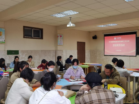 5月6日下午,教工党支部全体党员在团辅室开展了4月份主题党日活动。本次主题党日围绕学习贯彻习近平新时代中国特色社会主义思想主题教育开展。全体党员集中学习了习近平在中共中央政治局第四次集体学习时的重要讲话、习近平在学习贯彻习近平新时代中国特色社会主义思想主题教育工作会议上的重要讲话精神和陕西省学习贯彻习近平新时代中国特色社会主义思想主题教育动员大会精神。