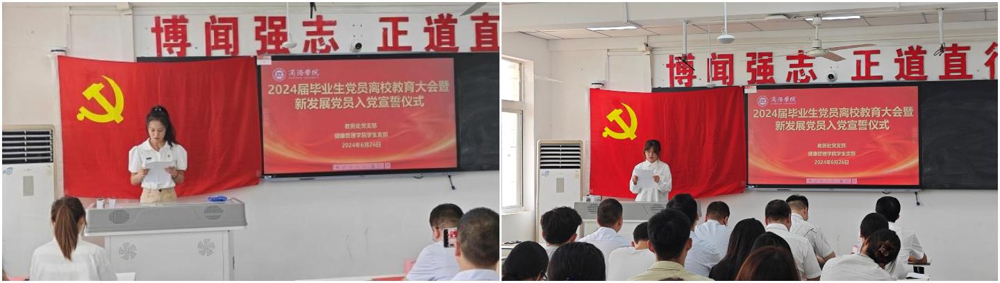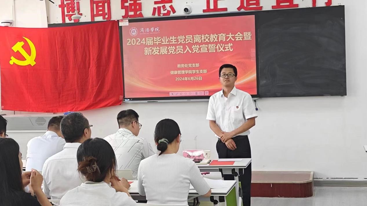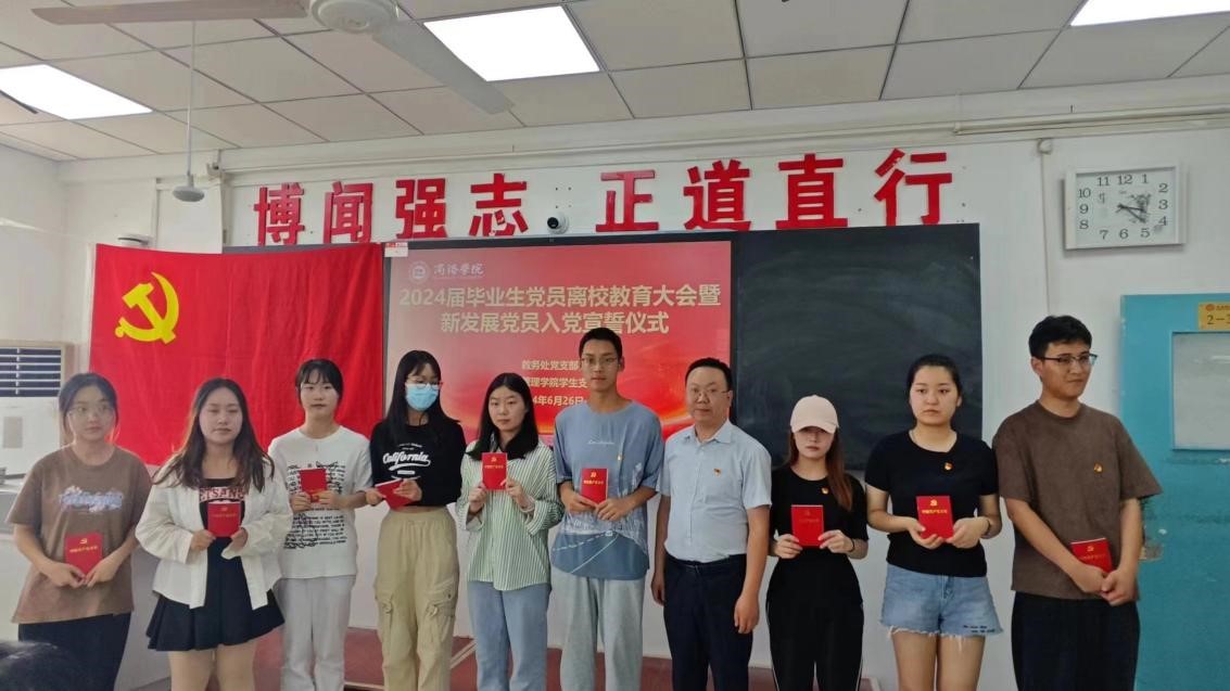 会上,组织全体党员同志重温入党誓词,并为新发展党员佩戴党徽、发放党章。随后,杨宪华号召广大毕业生要主动将个人的成长融入到党和国家发展事业之中,把在校学到的知识转化为成长进步的动力源泉,在科教兴国、人才强国事业中展现青春风采,创造出无愧于党的教育、无愧于母校的培养、无愧于青春年华的光荣业绩,以青春之我、奋斗之我、奉献之我,为中华民族的伟大复兴勇担时代重任、贡献青春力量。