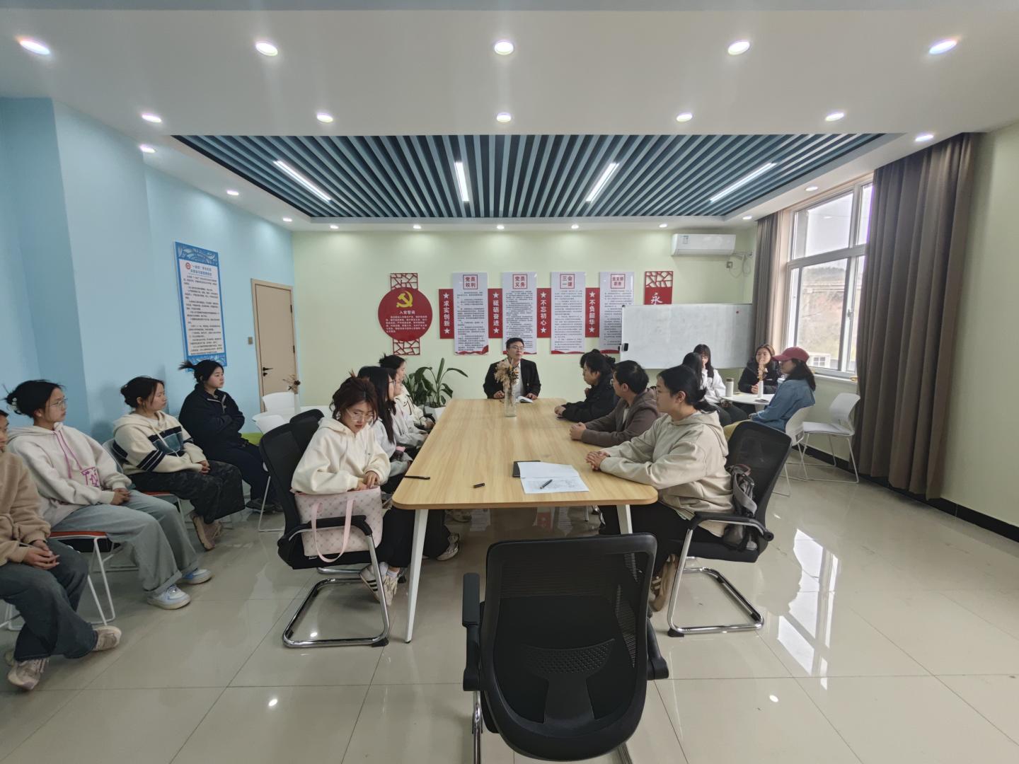 为强化党员员工的身份意识,激励其担当作为,发挥先锋模范作用。4月2日,公司在“寓”见“悦”享空间开展“重温党史,厚植家国情怀”主题活动。学工办主任秦绍龙、辅导员樊聪及员工党员代表参加。