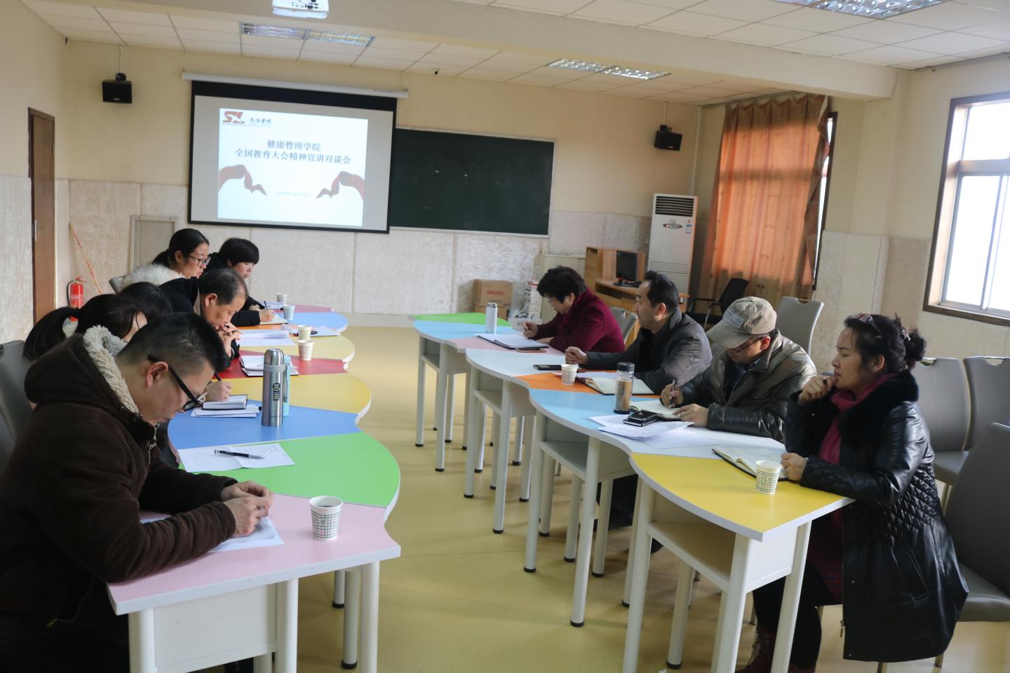 12月11日下午公司开召全国教育精神大会宣讲对谈工作,会议由党总支书记鲁绵茸主持,公司班子成员、系主任、实验中心主任参加。