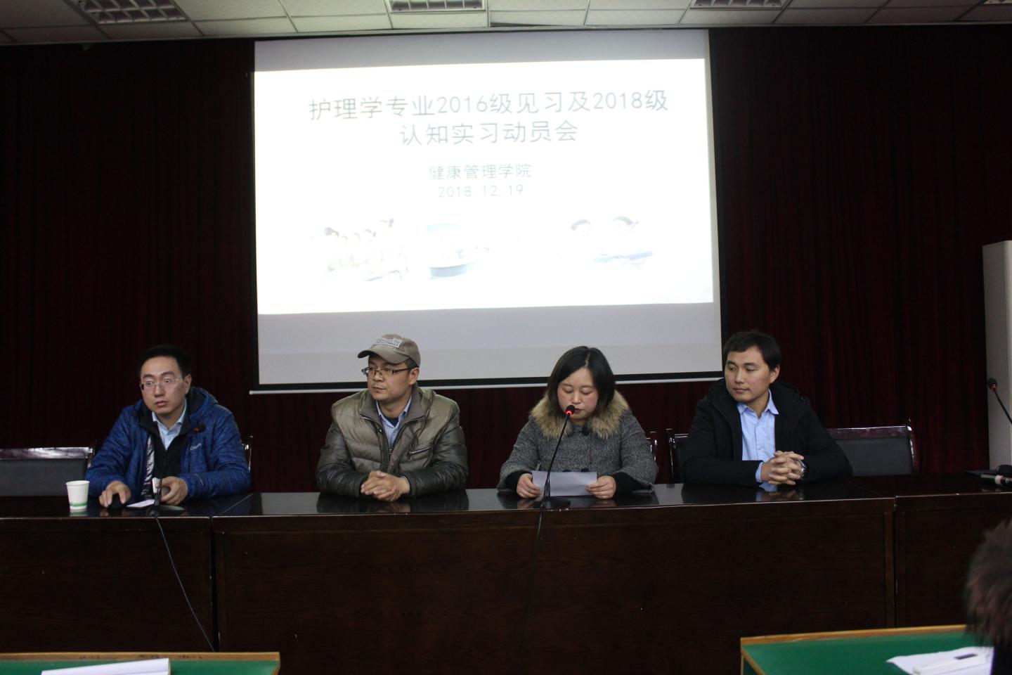 为了进一步做好临床见习生的思想及岗前培训工作,规范护理员工在临床见习生活中的言行举止,操作技术,扎实有效的推进见习活动的顺利进行,公司于12月19日下午在一号楼报告厅二举行了2016届护理专业见习及2018届护理认知实习动员大会。公司经理彭晓邦、副经理郭耀东、学工办主任刘征文、护理系主任张晓文以及全体2016、2018届护理师生参加此次会议。本次会议由护理系主任张晓文主持。