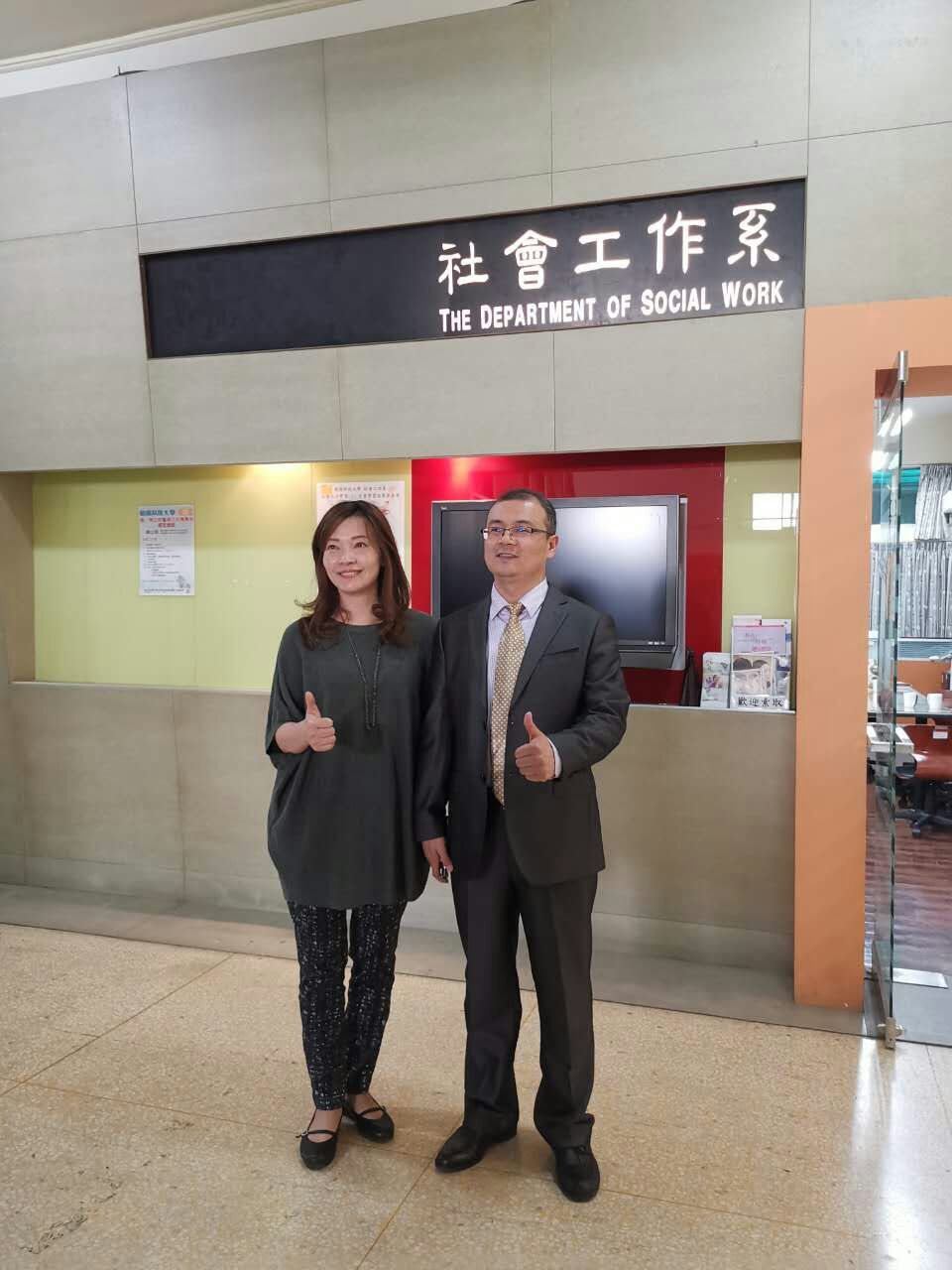 研修期间,彭晓邦经理与台湾朝阳科技大学社会工作系系主任王慧琦就社会工作的人才培养模式、创新教育、产学研合作等问题进行了深入的交流与讨论。之后彭晓邦经理实地参观该校社会工作实验室,了解该校社会工作的实验室的特色、设施,及员工实践教学的开展。