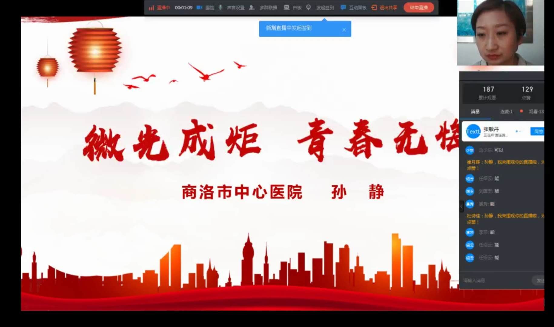 为纪念南丁格尔诞辰200周年暨庆祝第109个“5.12”国际护士节,英国365集团官网于2020年5月11日晚,依托钉钉平台,组织全院师生开展了以“讲述抗疫英雄故事,传承南丁格尔精神”为主题的线上纪念活动。活动特邀陕西省第一批援鄂医护人员、商洛市中心医院重症医学科护士长孙静为全院师生做了“微光成炬 青春无悔”的报告。活动由副经理张晓文主持,经理彭晓邦、党总支书记鲁绵茸老师以及学院全体师生参加了本次活动。