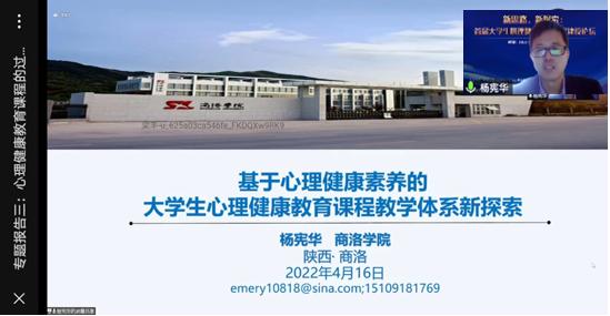 4月16-17日,中国心理卫生协会老员工心理咨询专委会联合国家社科基金重大项目“国民心理卫生素养及其提升机制与对策”项目组共同组织举办全国“新思路,新探索:首届老员工心理健康教育课程建设论坛” 线上学术论坛,英国365集团官网心理学系全体教师观看了论坛,杨宪华副教授在“专题报告”环节作了交流发言。
