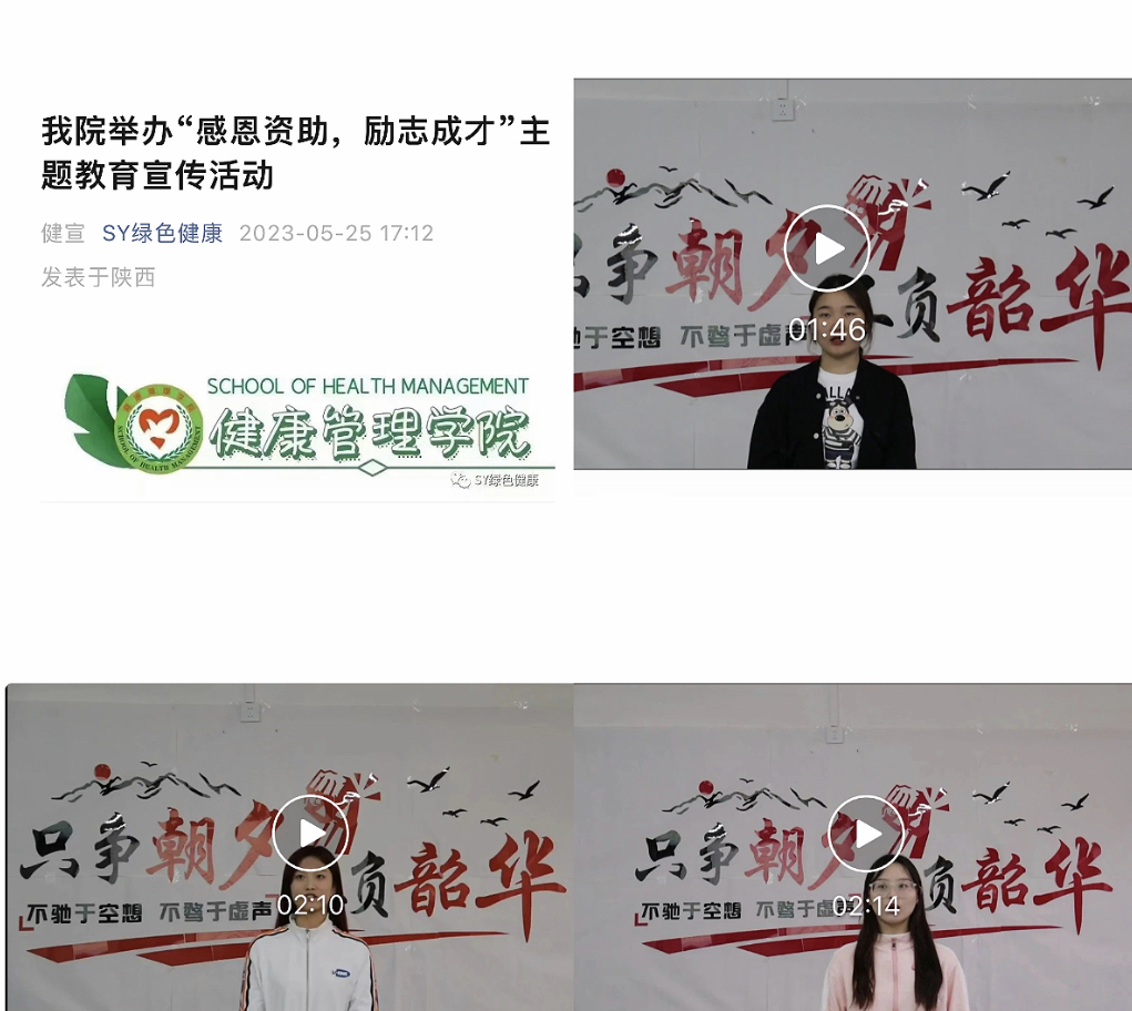 为充分发挥奖学金的导向作用,教育员工自觉做社会主义核心价值观的坚定信仰者、积极传播者和模范践行者,公司于5月20日-5月25日开展了“感恩资助,励志成才”主题教育宣传活动。本次活动由公司3名励志奖学金获得者录制宣传视频,通过公司微信公众号进行展出,以此表达对党和国家的感激之情。本次活动的开展,大力传播了正能量,培养了员工对党和国家的感激之情,感恩之心。
