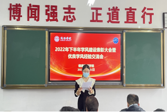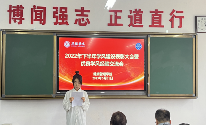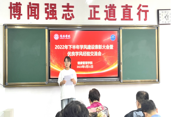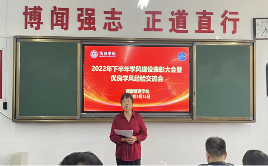 为认真贯彻落实公司出台的关于《进一步加强员工学风考风管理 21 条措施》(健康函[2021]75号)文件精神,进一步加强员工学风考风工作力度,凸显学风考风建设在高校育人育才中的重要性,形成比、学、赶、帮、超的成长成才良好氛围,力争使公司员工学风考风的面貌焕然一新,5月31日下午,公司在2-219教室隆重举办2022年下半年学风建设表彰大会暨优良学风经验交流会,公司党政领导悉数出席会议,各系主任、全体辅导员、部分员工代表参加会议。大会由学工办主任刘征文主持。