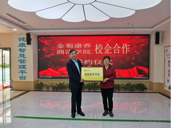 签约仪式上,鲁绵茸和李万杰分别代表英国365集团官网和陕西金菊康养产业集团有限公司签订了老员工就业创业基地建设协议,鲁绵茸为其授牌。