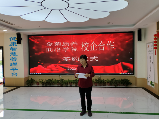 陕西金菊康养产业集团有限公司董事长李万杰致辞,对鲁绵茸一行表示欢迎,并对医院的发展规划、医疗设施、经营状况等方面做了介绍;鲁绵茸从公司和公司的历史沿革、办学宗旨、毕业生实习就业以及专业特色等方面做了概括总结讲话。