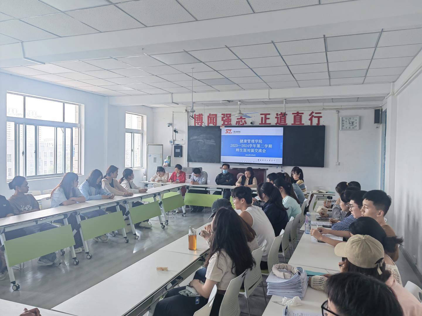 为提升公司员工服务管理工作水平,5月8日,公司在2-315教室举办了2023-2024第二学期师生面对面交流活动,公司经理郭耀东、党委副书记·纪委书记·副经理杨宪华、副经理张晓文、教学秘书、各系系主任、实验室管理人员、全体辅导员以及各班员工代表参加了会议。