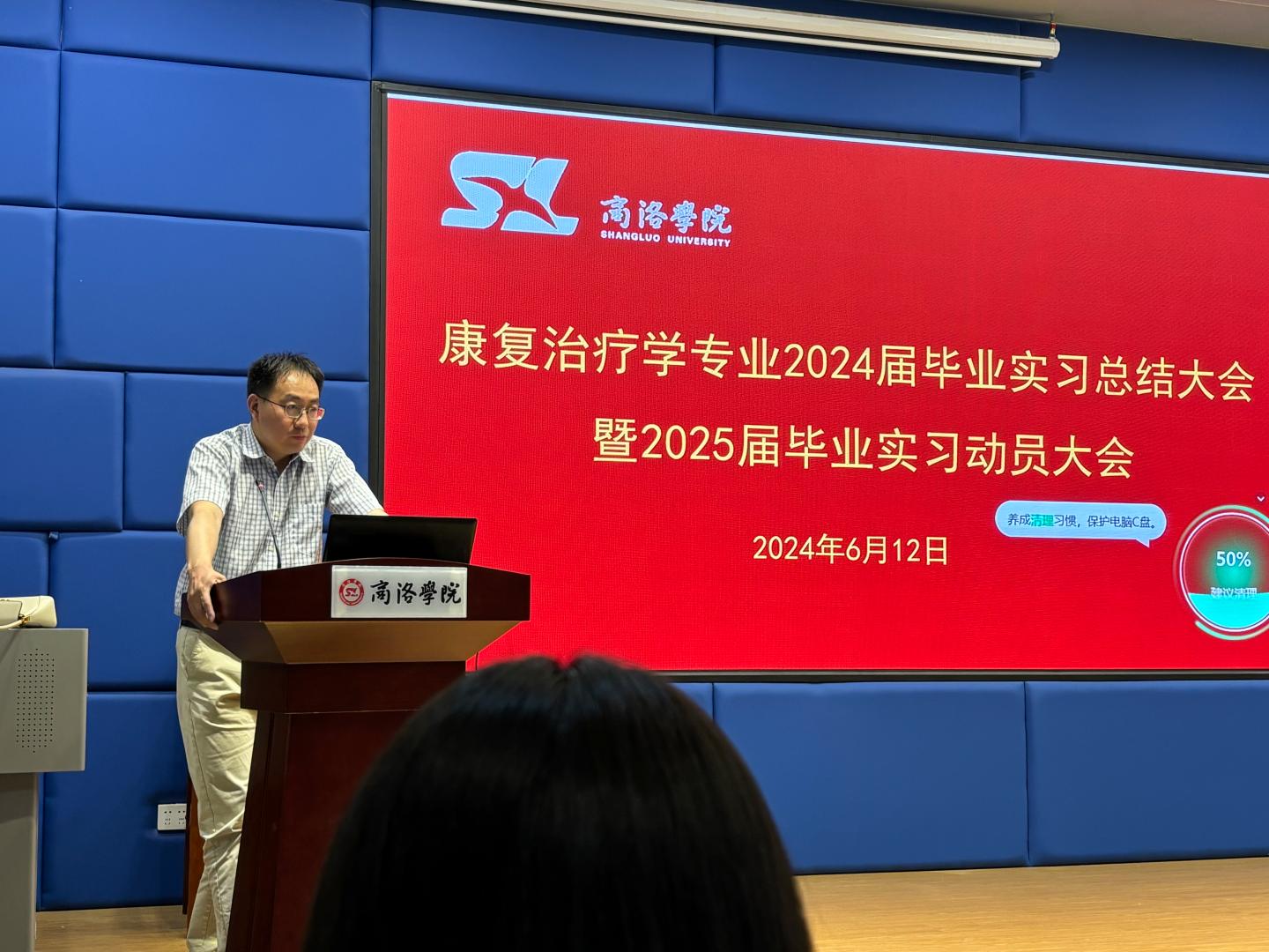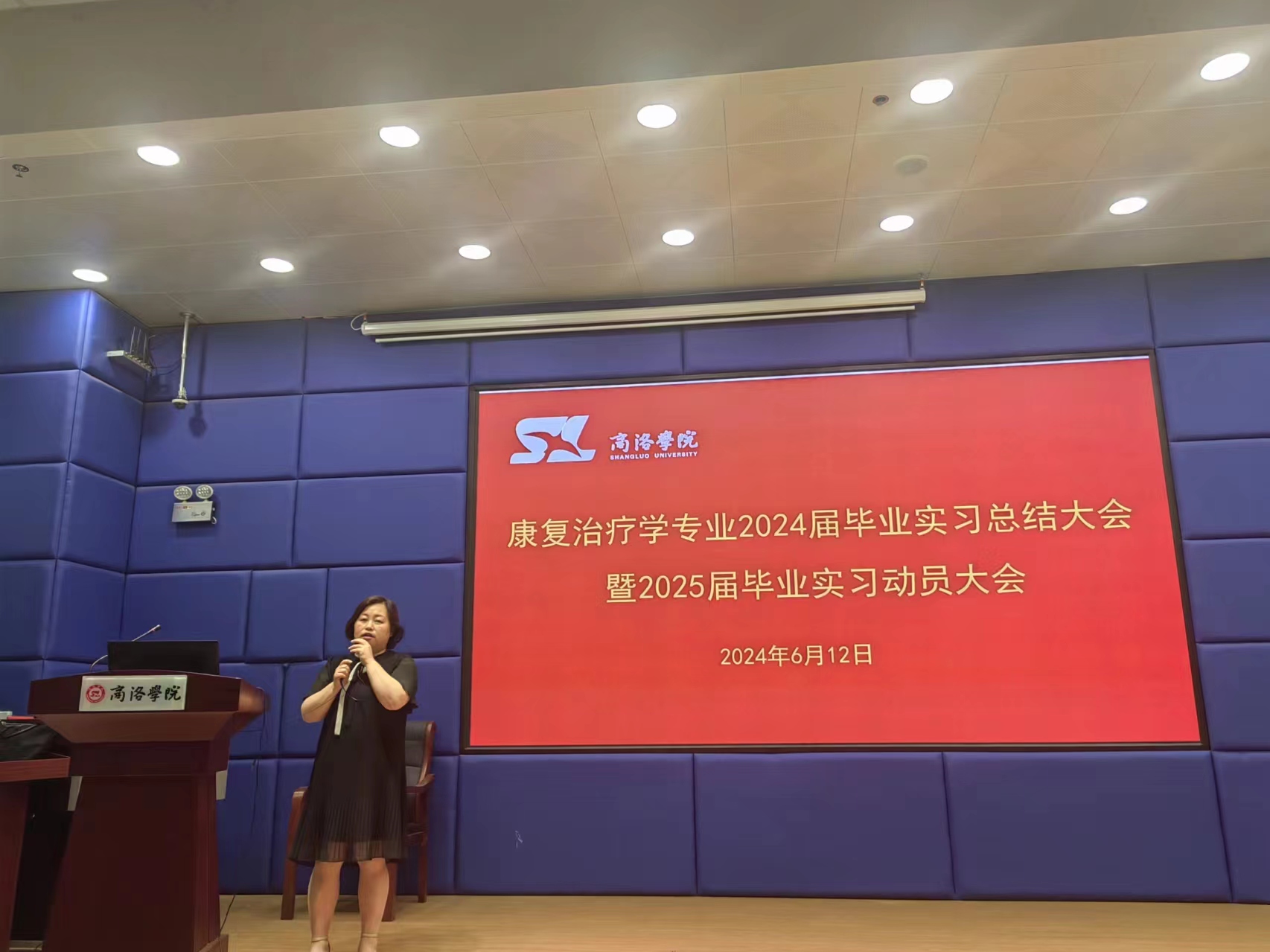 6月12日,公司在8号教学楼多媒体18教室召开康复治疗学专业2024届毕业实习总结大会暨2025届毕业实习动员大会,经理郭耀东、副经理张晓文、康复系全体教师、康复治疗学专业2024届、2025届全体实习生参加会议。
