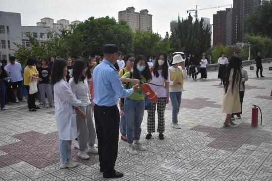 报告结束后,在二号楼北侧平台,由保卫处科长张珂为师生们讲解了消防灭火器的相关知识及使用方法,并现场指导师生正确使用灭火器。
