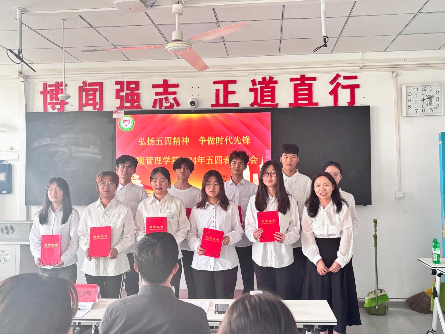 杨宪华对获得表彰的同学们表示祝贺,并对同学们提出三点期望:一是要提高思想认识,坚定理想信念。要尽早想明白、弄清楚为什么要做团学干部、为谁做团学干部,认认真真做事,踏踏实实做人,在为同学们做服务的过程中不断增长本领,锤炼意志。二是要学好专业知识,拓宽自我眼界。要不断增强为同学们服务的本领,学习好专业文化知识,多听多看多实践,不断拓宽自我眼界。三是要正视成长挫折,不断勇毅前行。要能正确对待成长中的挫折,以顽强的意志和坚毅的性格面对人生,要能够珍惜大学时光,树立理想,增长本领,顽强成长,砥砺品格。