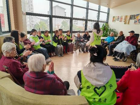 表演结束后,志愿者们围坐在老人身边,亲切地与他们聊天、交流互动。老人们分享着自己的人生故事,志愿者们认真聆听,时而欢笑,时而感动。随后,志愿者们还为老人们按摩身体,用实际行动传递着关爱。