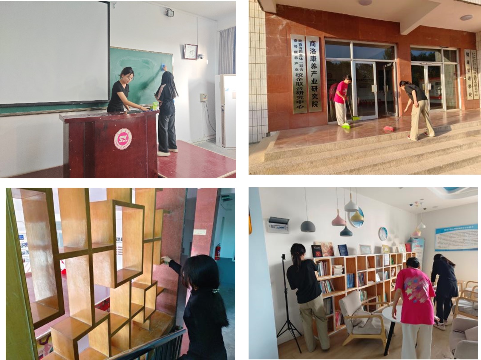 志愿者分组重点对教学楼区域环境卫生进行打扫清洁。教室清扫组对课桌积灰、地面死角展开“地毯式”清洁,确保教学空间窗明几净;宣传展板维护组细致擦拭二楼、三楼走廊的健康教育展板,使“预防疾病”、“健康生活”等主题宣传内容焕发新光彩;重点区域美化组则对东侧一楼英国365集团官网标识牌及周边环境进行集中整治。